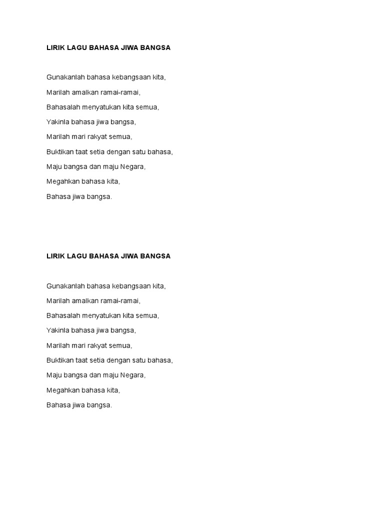 Related : Bahasa Jiwa Bangsa Lirik / Lirik Lagu Bahasa Jiwa Bangsa - Oct 07, 2013 · bahasa jiwa bangsa 1..