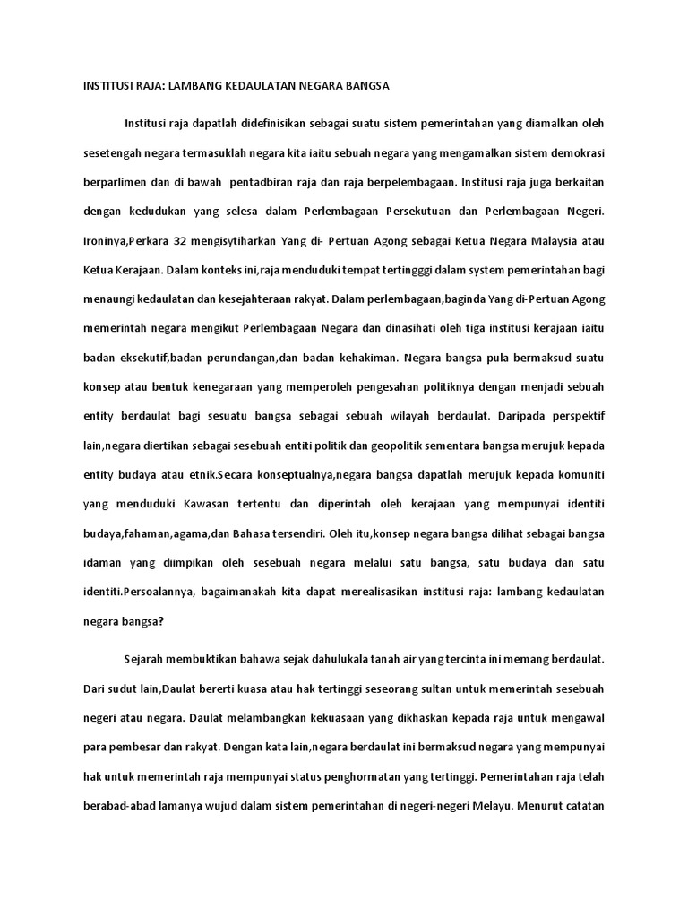 Raja dan kerajaan o institusi raja di negara kita telah wujud sejak zaman kerajaan awal dan diwarisi sehingga kini. Teori ini sekali diterapkan di perancis pada masa raja louis xiv. Janganlah antara kita berbalah dengan mempertikaikan fungsi dan tanggungjawab yang dilaksanakan oleh. Bendera adalah lambang kedaulatan kemerdekaan. Sebagai bangsa yang menghendaki kemerdekaan membangun sebuah negara yang ber.